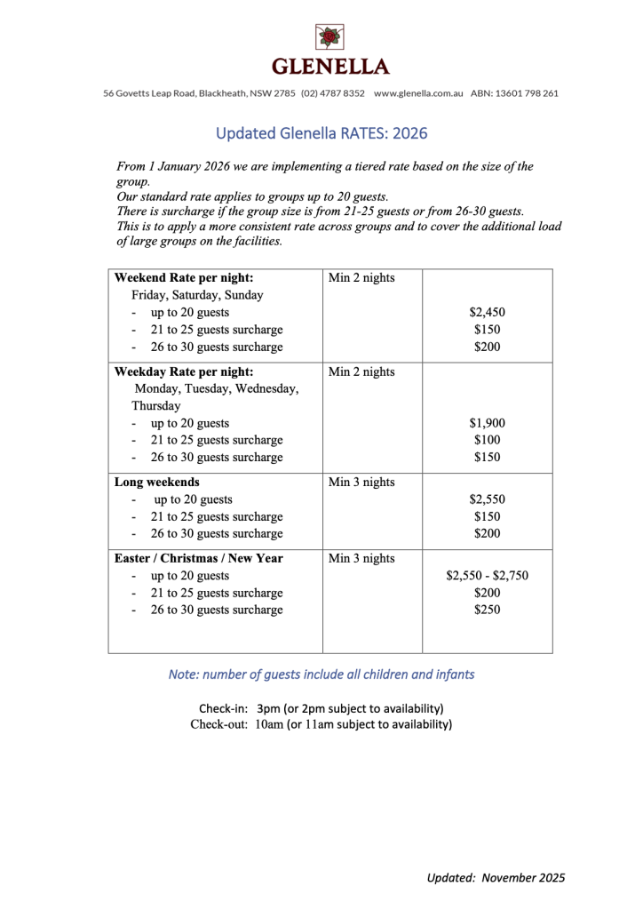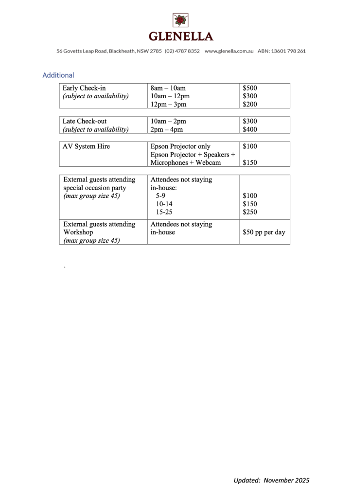 Full Rates Sheet 2026 – Entire House